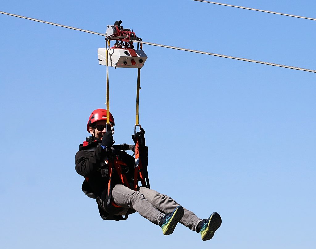 Sur les grandes tyroliennes, la gestion des remontées peut générer des coûts importants en personnel, en logistique et en manutention.
